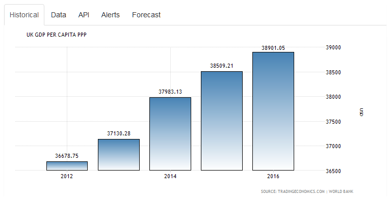 - UK GDP per capita Purchasing Power Parity PPP. Source: tradingeconomics.com Click image to enlarge.