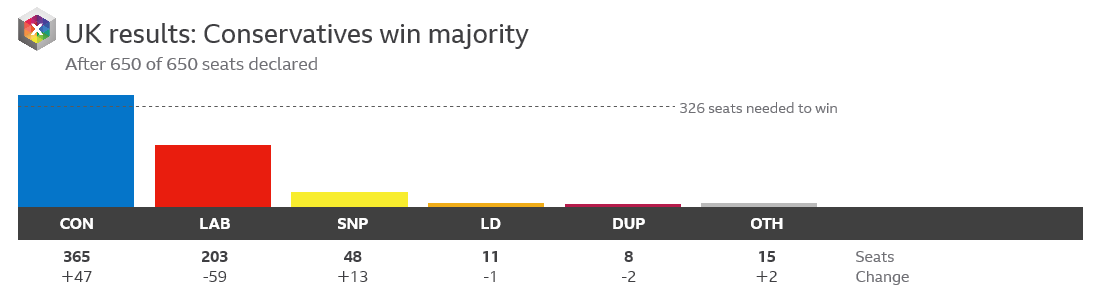 UK General Election 2019 results chart. Image courtesy of BBC.com