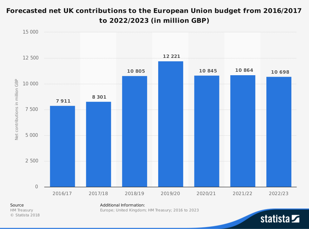 And lest we forget the EU which hates the idea of the UK leaving the union — and why wouldn’t they? — as the UK pays more into the EU than any other country, save Germany. Yet, only the UK pays (up to) £12.221 billion per year (net) to be a member of the EU club.
